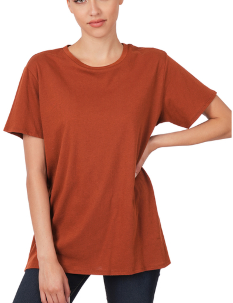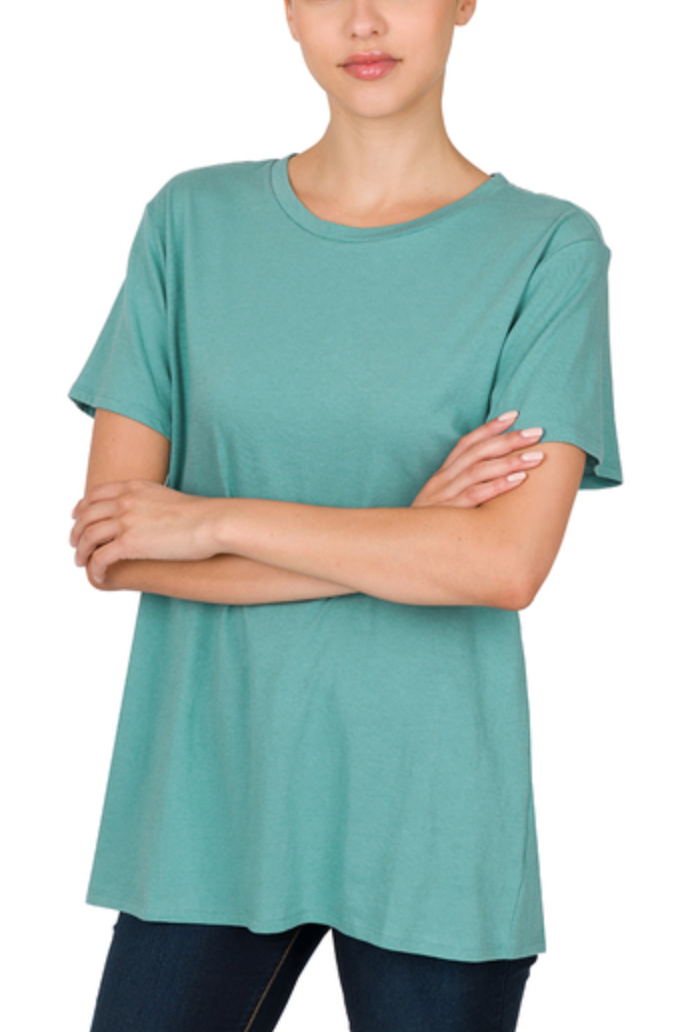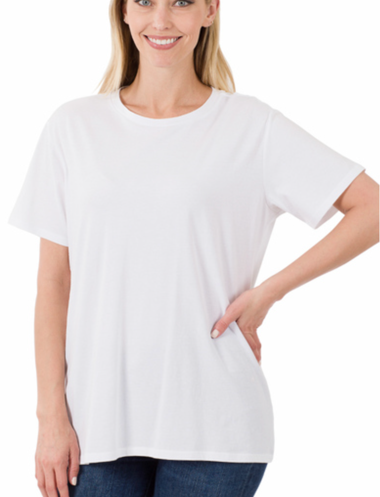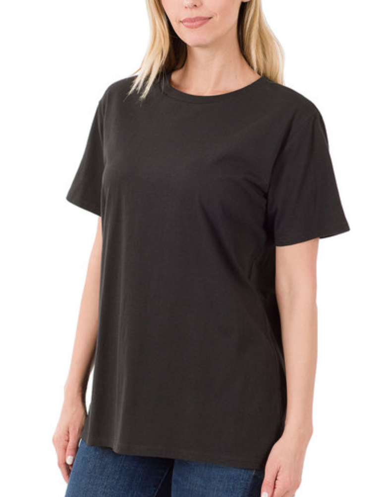 COTTON SHORT SLEEVE BOYFRIEND ROUND NECK TEE