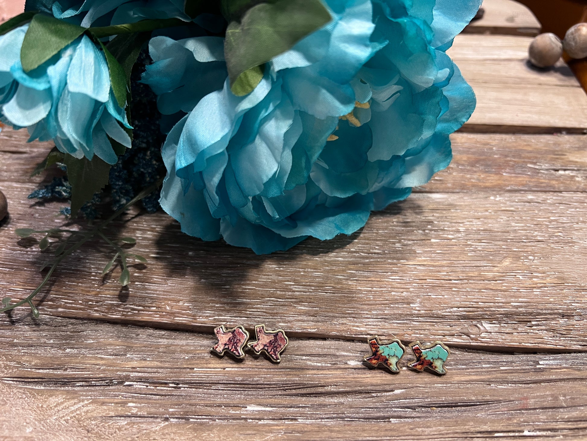 Experience a touch of elegance with our Marbled Texas Earrings. Each pair features a stunning marbled effect that adds a pop of color to any outfit. Elevate your style with these gorgeous earrings.