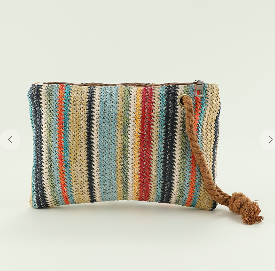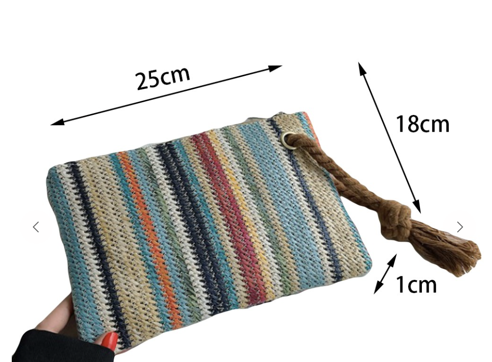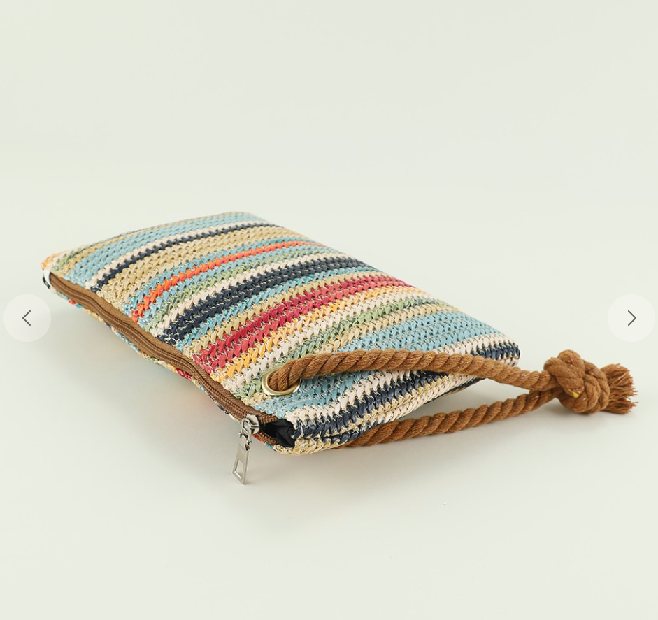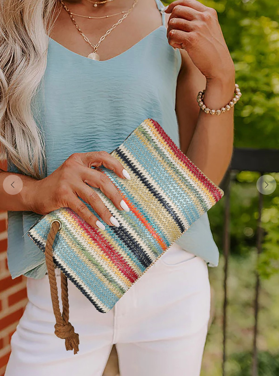 This multicolored color block straw bag will compliment any outfit in. your wardrobe. Boasting beautiful vibrant colors that will be sure to match with every outfit.