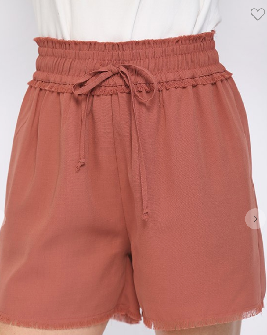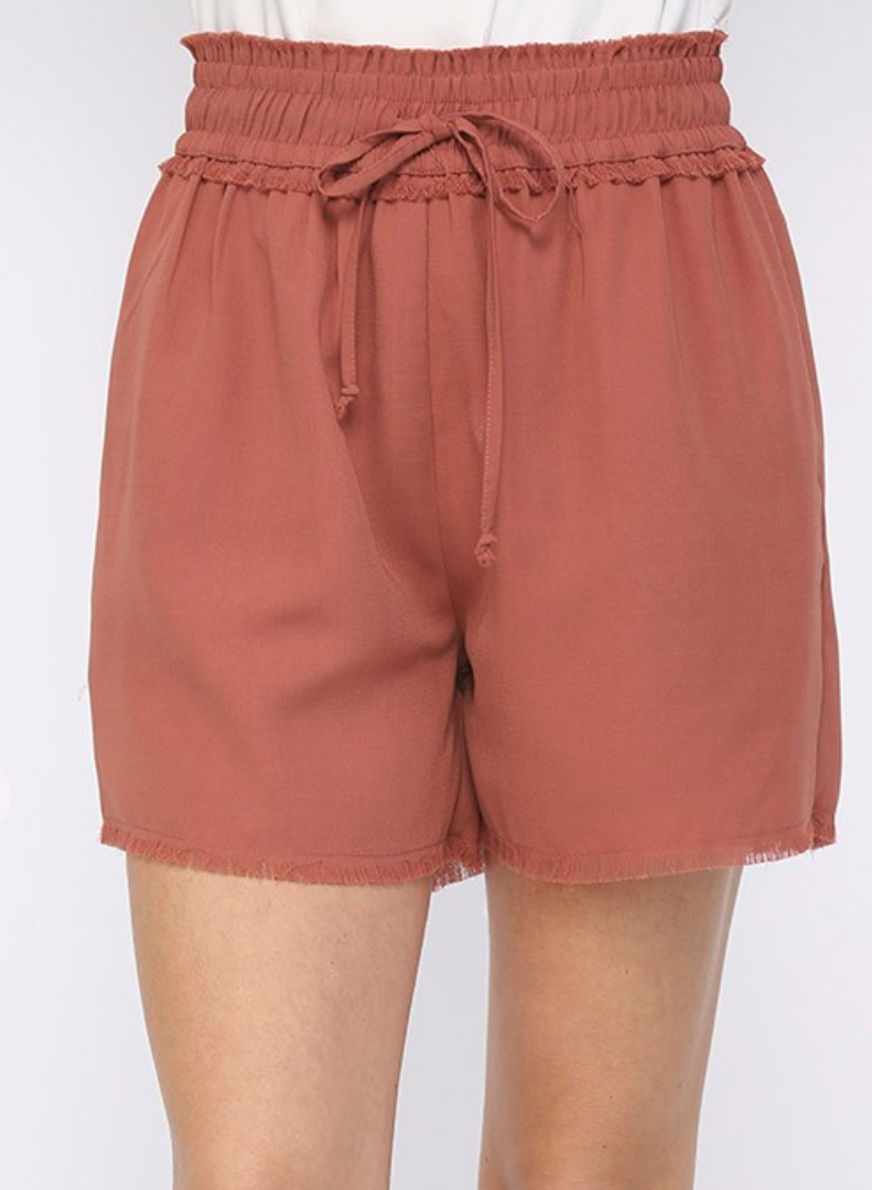 Beautiful marsala colored shorts. Solid Textured Woven and Frayed Detail Shorts with Side Pockets and Full Lining. 100% Polyester