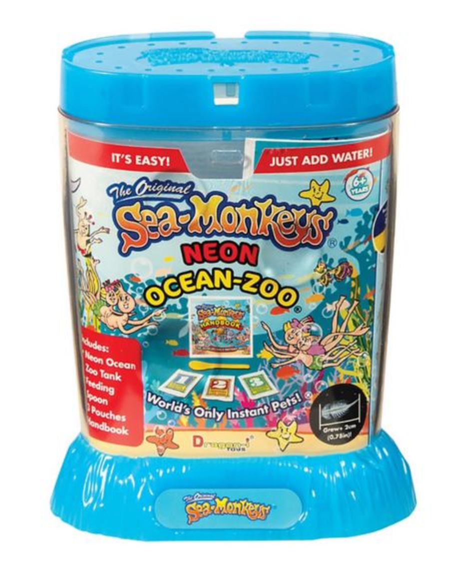 Now you can have your own Sea Monkeys! This kit gives you everything you need: water purifier, instant live eggs and growth food. These are the easiest pets to have. Aquarium has a ventilated lid and a built in magnifier.