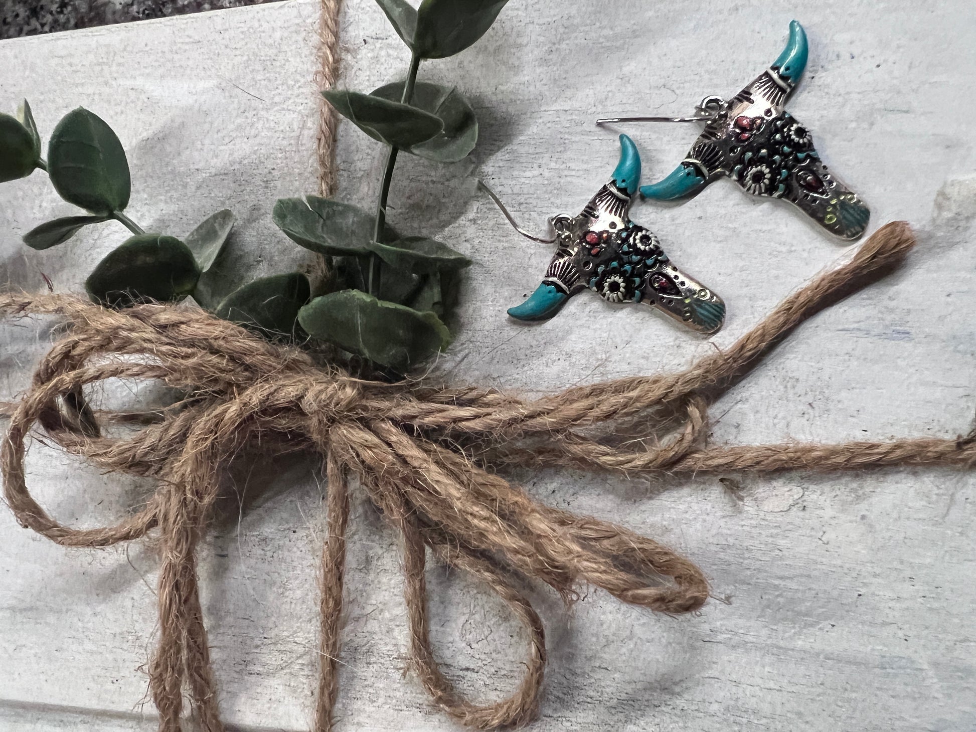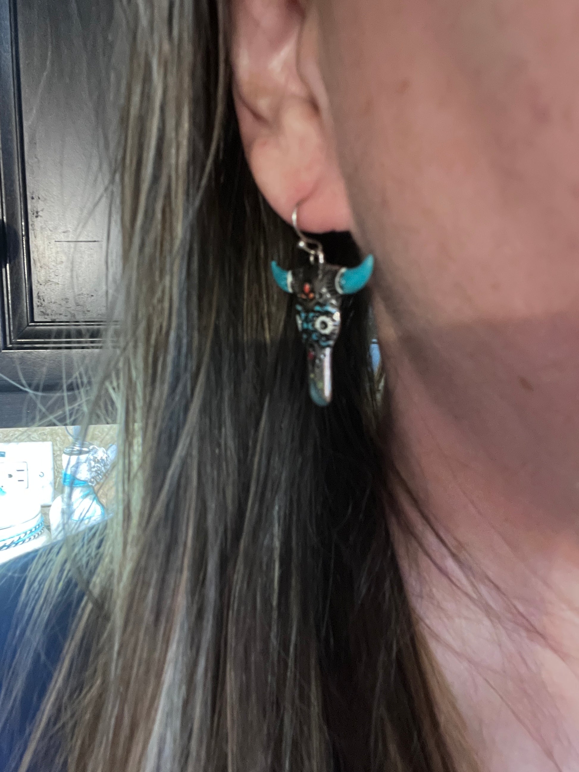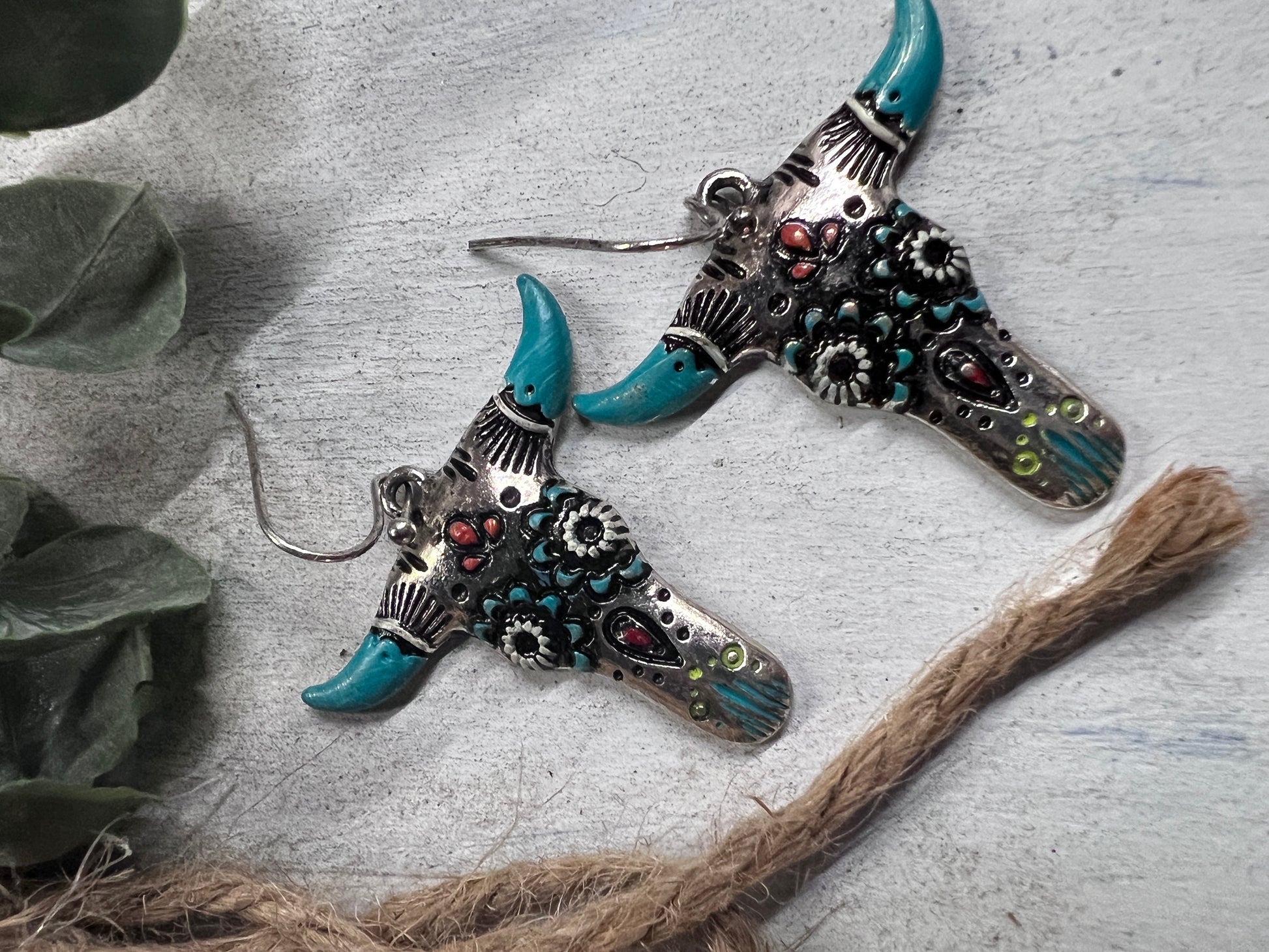 These painted steer head earrings are gorgeous. Beautiful colors and will compliment your favorite western outfit!
