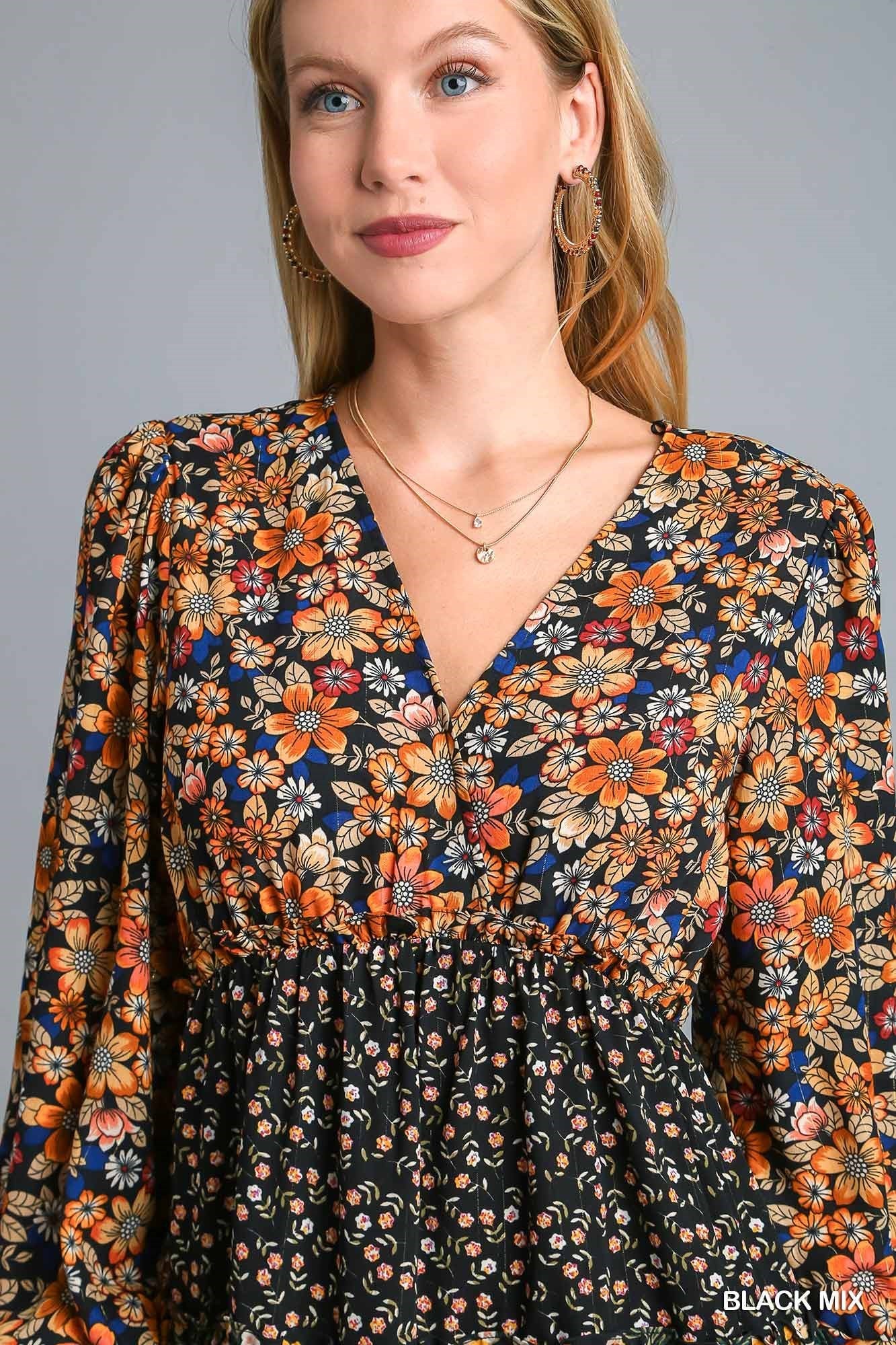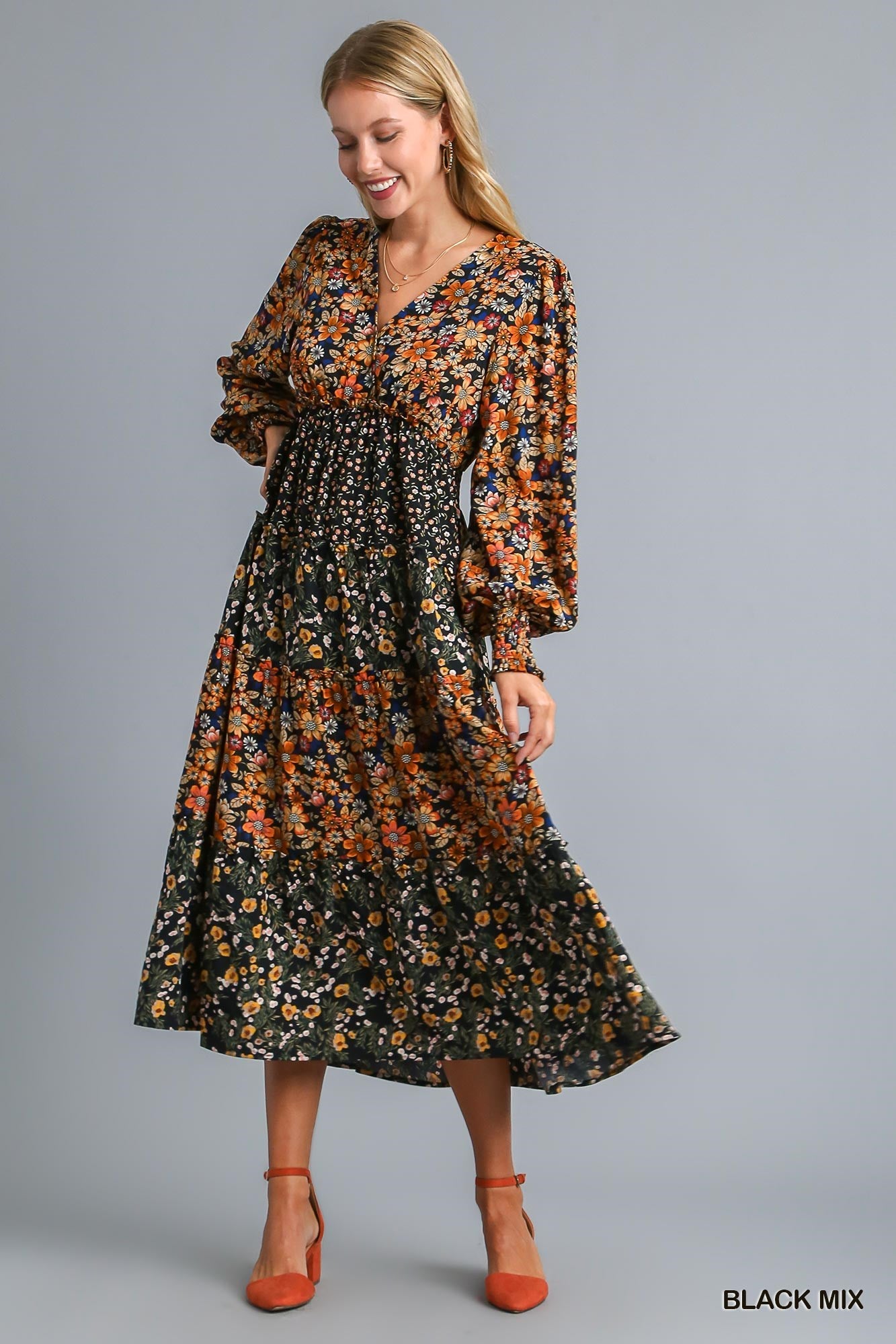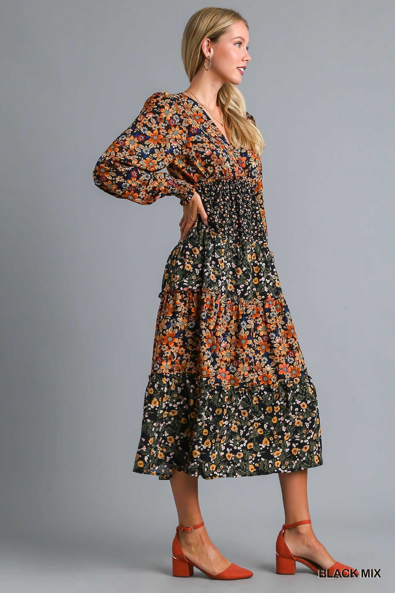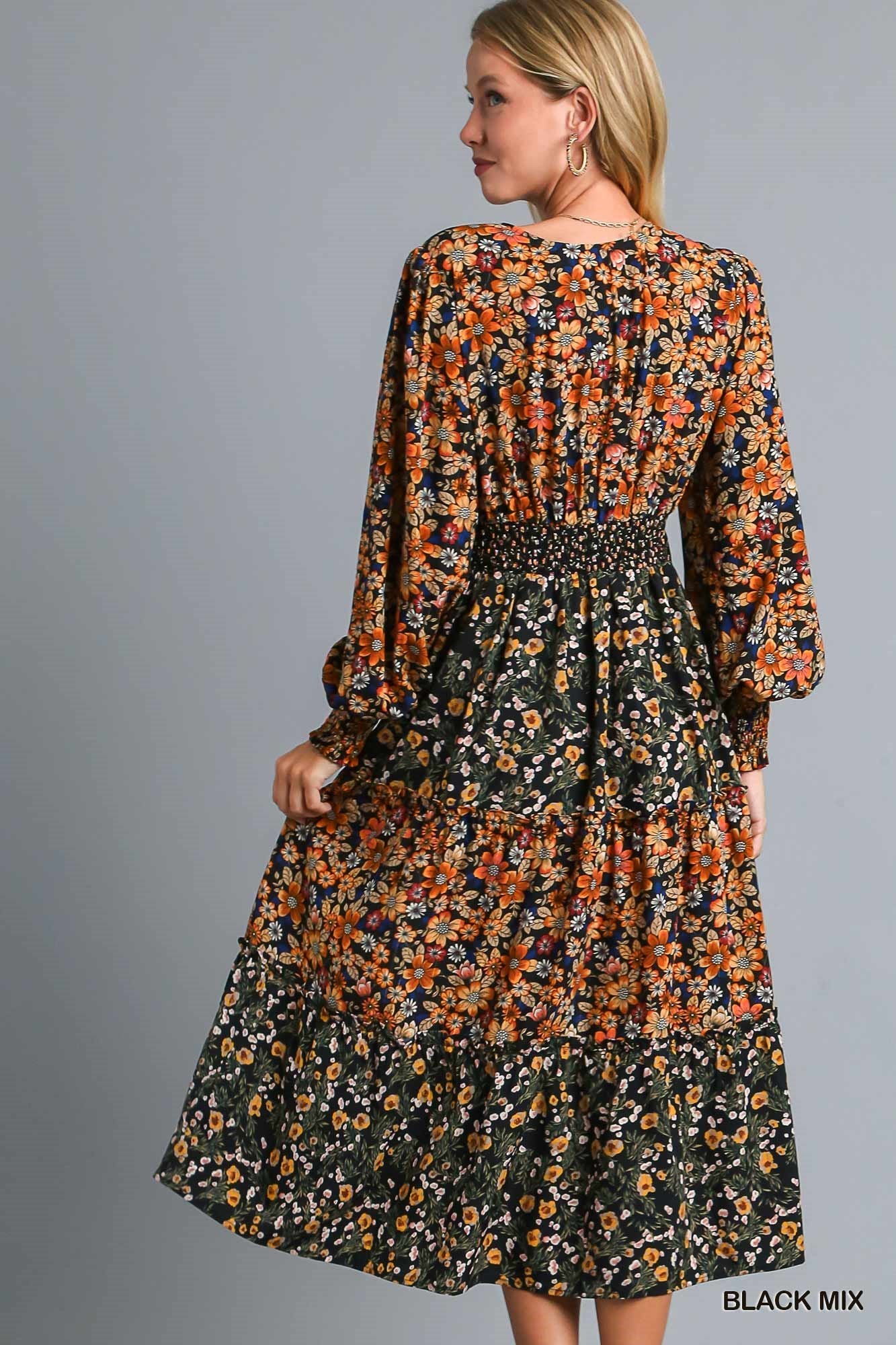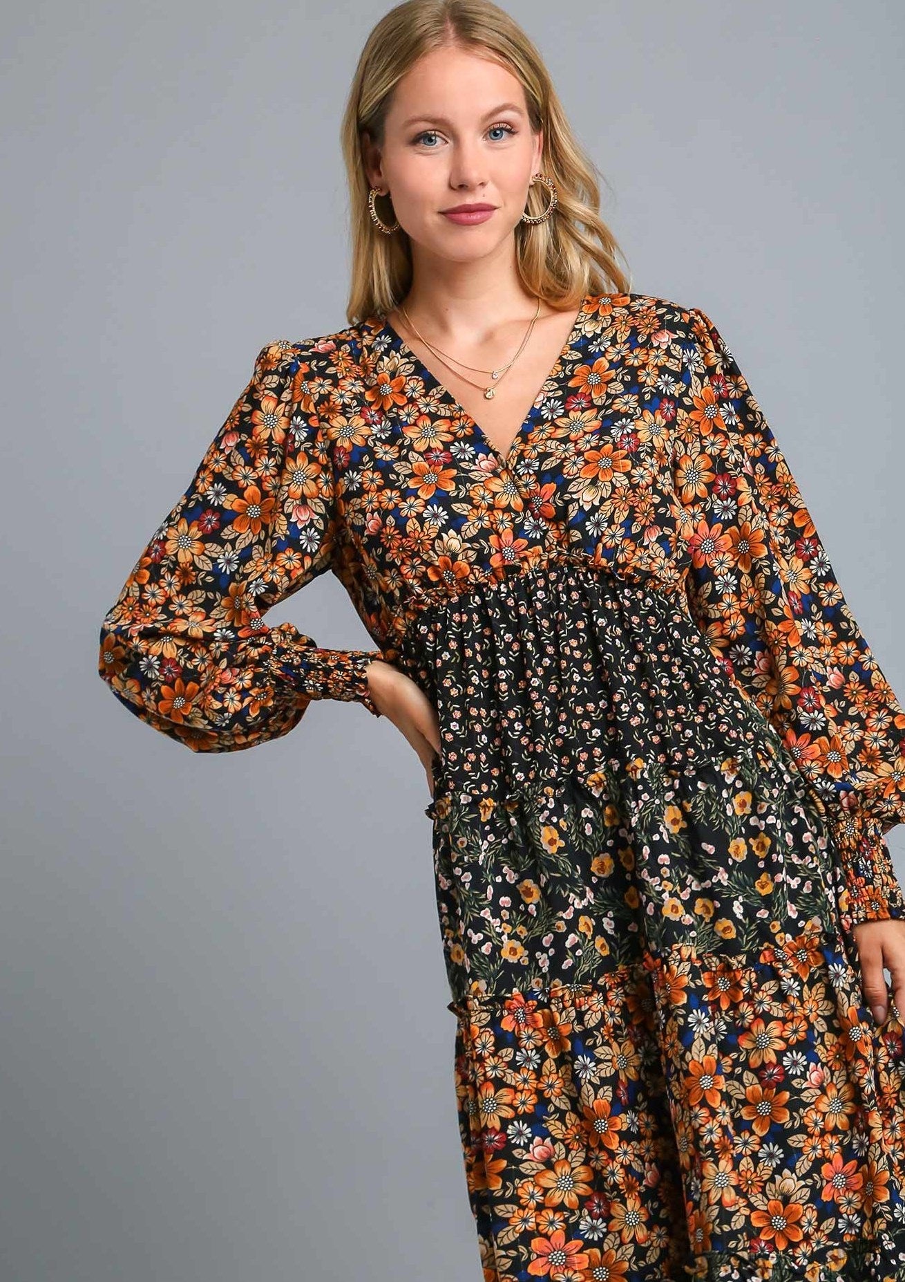 Look stylish and chic in this V-neck tiered floral print midi dress. Crafted from 95% polyester and 5% metallic fabric, this dress is sure to make you stand out from the crowd. The small size has been modeled by someone who is 5'9" to give you an idea of the perfect fit. Get the look without compromising on comfort.