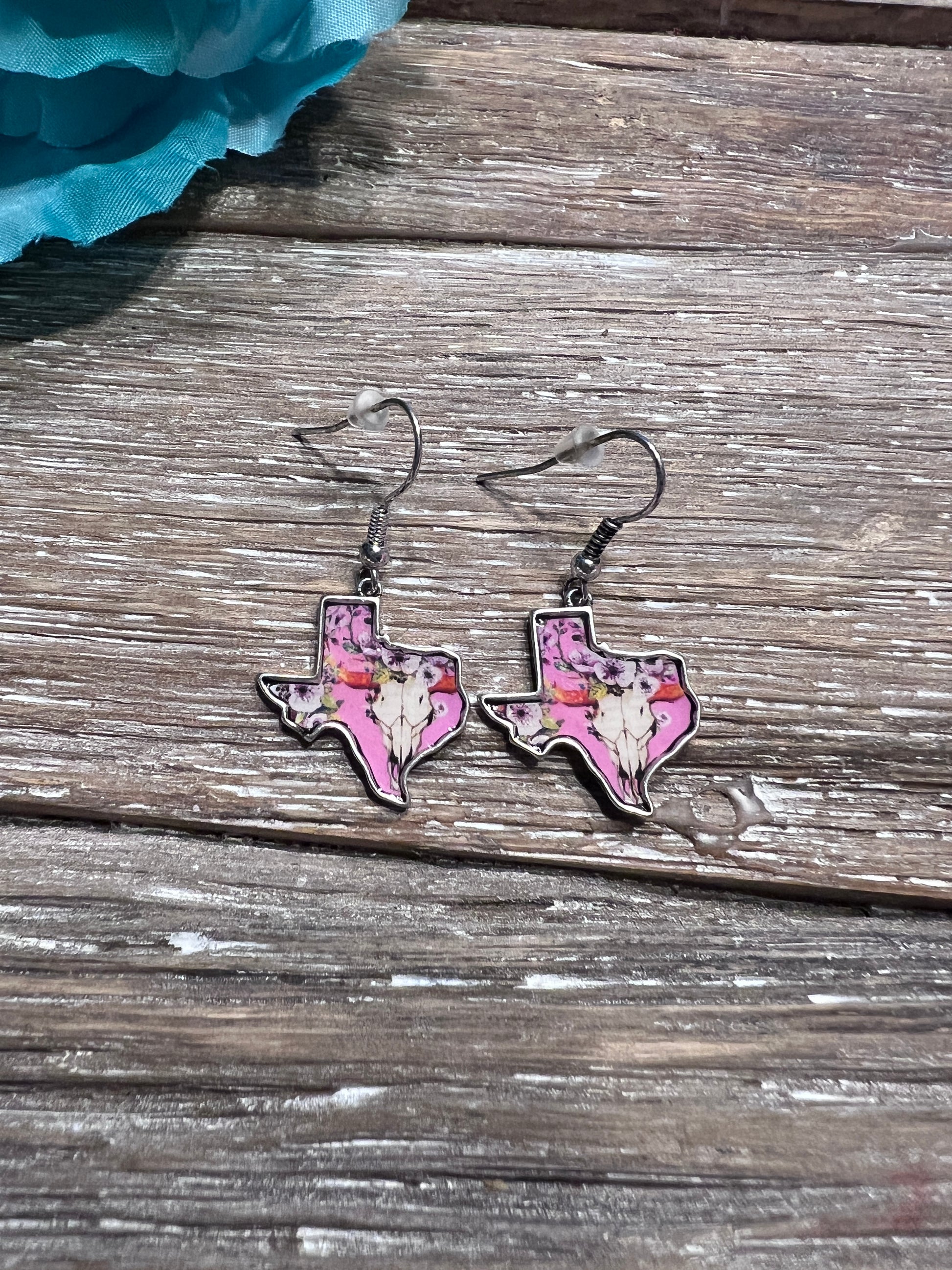 Add a touch of Texas to your outfit with our steer head pink Texas earrings. Made with high-quality materials, these earrings feature a unique design that will make you stand out. Perfect for rodeos, concerts, or everyday wear. Show off your style with these fashionable and versatile earrings.