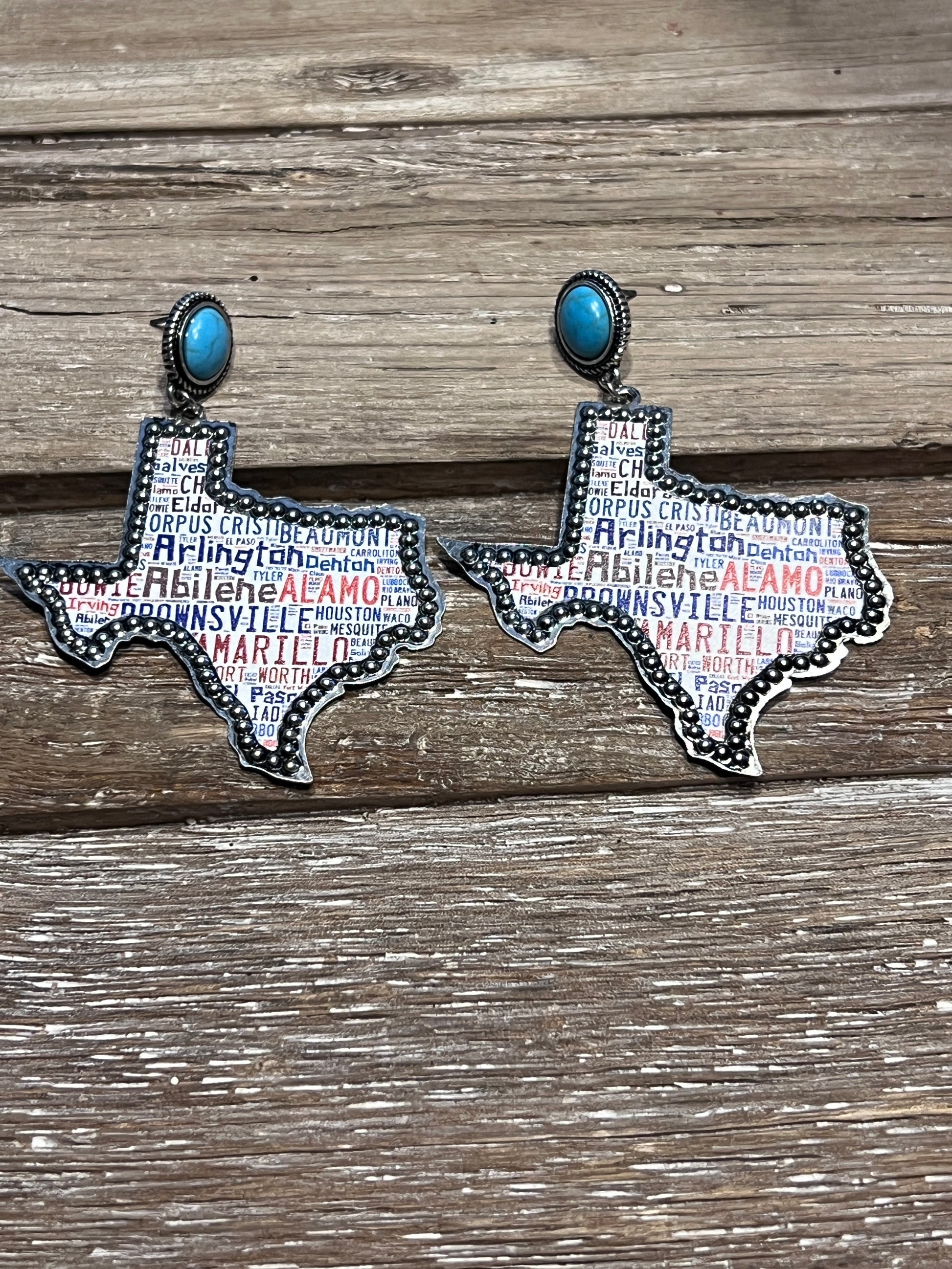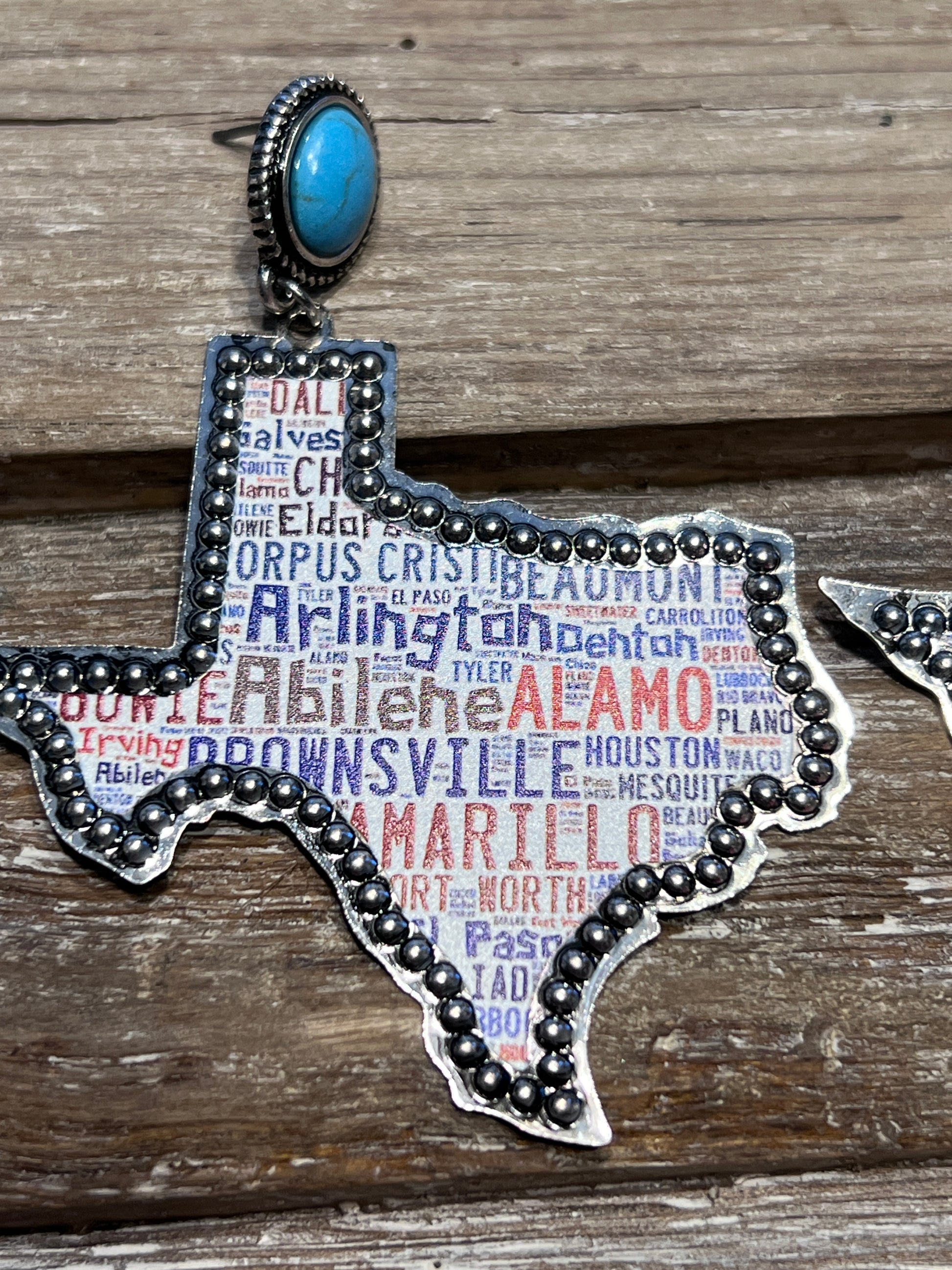 These Texas Cities Earrings showcase your love for the Lone Star State with a unique twist. Crafted with precision, these earrings feature a detailed map of Texas with its major cities, making them a perfect accessory for any Texan or lover of the state. Show your pride in style.