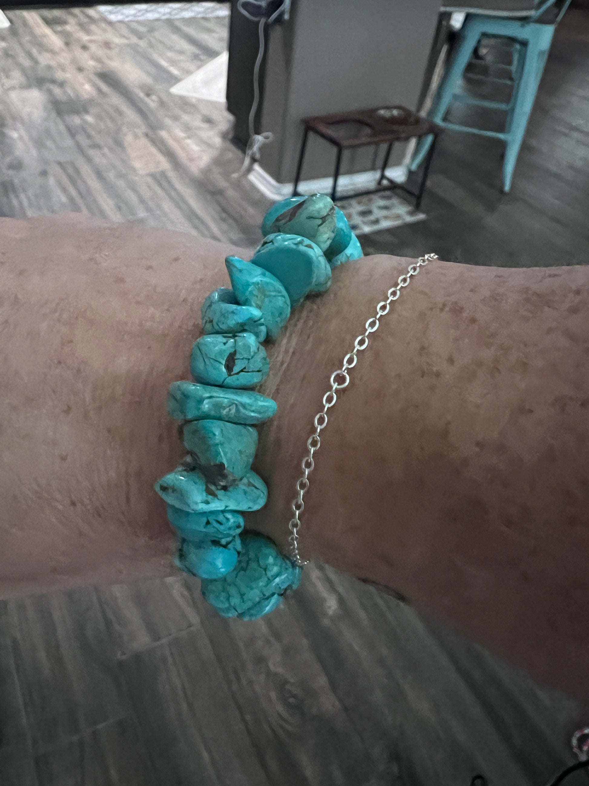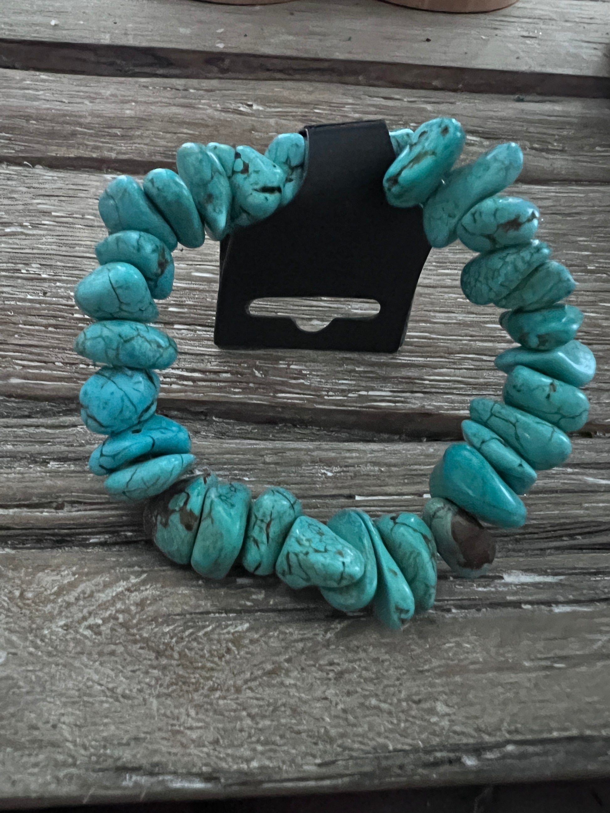 Turquoise bead stretch bracelet. Compliments your wardrobe, dressed up or casual wear.