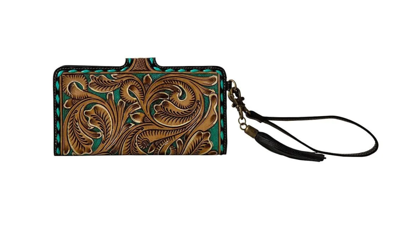 Western Swing Hand-Tooled Wristlet Wallet