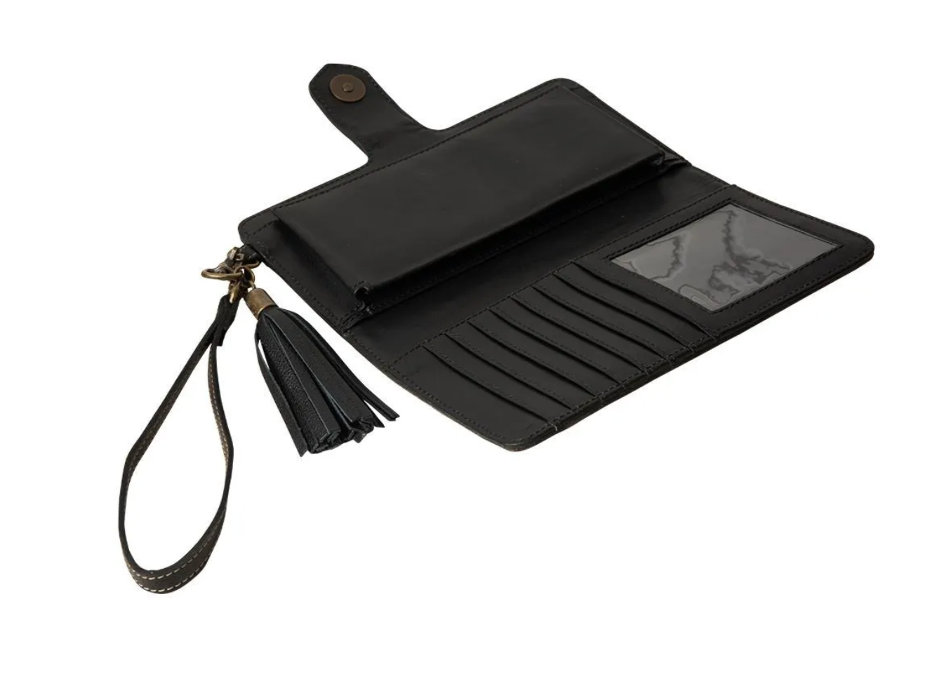 Matching leather wristlet included.